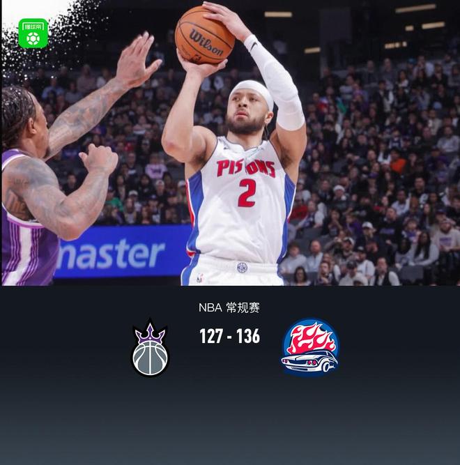 北京时间12月24日,NBA常规赛,萨克拉门托国王队对阵底特律活塞队。半场结束国王队58-75活塞,终场国王队127-136活塞。国王德罗赞37分3篮板8助攻,威少27分6篮板4助攻;底特律活塞队的托比亚斯·哈里斯得到24分、4个篮板和4次助攻,坎宁安得到23分、7个篮板和14次助攻。国王德罗赞首节拿下11分,活塞队的坎宁安拿下10分。首节结束,国王队24-37落后活塞队。国王德罗赞第二节拿下12分,奥萨尔汤普森拿下9分。半场结束,国王队58-75落后活塞队。国王德罗赞第三节拿下8分,活塞队的杰伦杜伦拿下14分。第三节结束,国王队以97-115落后活塞队。第四节威斯布鲁克之王。 MrGrams拿下10分,Cunningham拿下6分为活塞队得分。最终,国王队以127-136不敌活塞队。全场数据:国王德罗赞37分3篮板8助攻,威少27分6篮板4助攻2助攻。抢断方面,阿丘瓦得到15分、11个篮板、3次助攻、2次抢断和1次盖帽;底特律活塞队托比亚斯·哈里斯得到24分、4个篮板和4次助攻,坎宁安得到23分、7个篮板、14次助攻和5次抢断,杰伦·杜伦得到23分、12个篮板、4次助攻和2次盖帽。首发阵容:萨克拉门托国王:德罗赞、威斯布鲁克、阿丘瓦、马克西姆·莱诺、基冈·穆雷;底特律活塞队:托比亚斯·哈里斯、坎宁安、杰伦·杜伦、奥萨尔·汤普森、邓肯·罗宾逊。